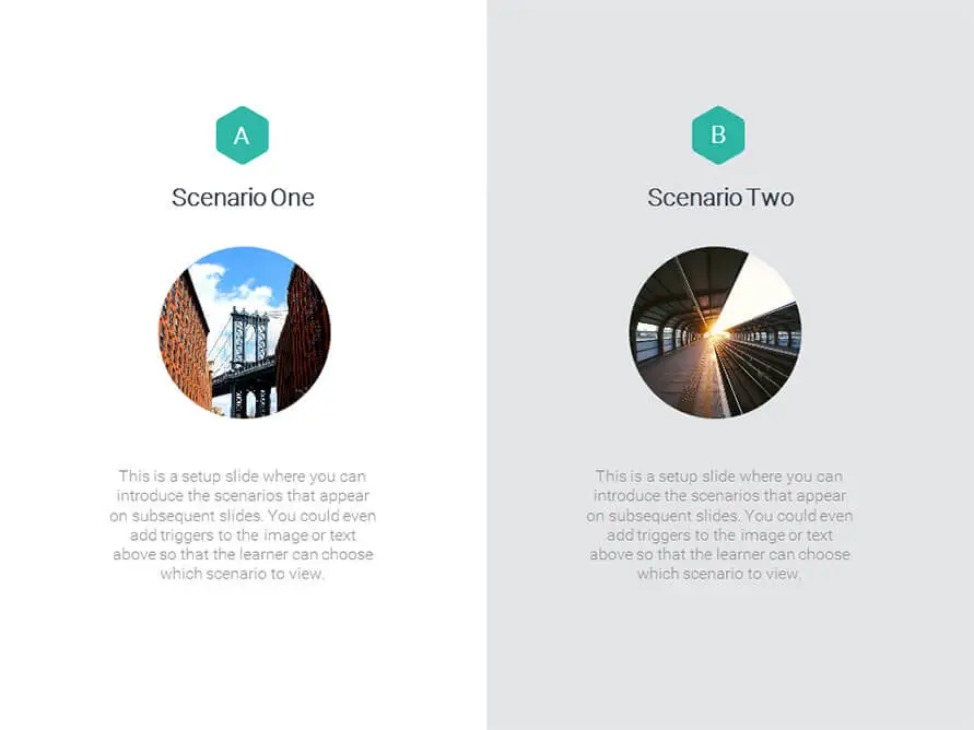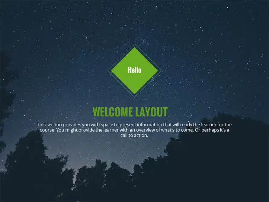 Select from hundreds of prebuilt layouts, scenario starters, interactions, and infographics—all designed to engage corporate and workplace learners.