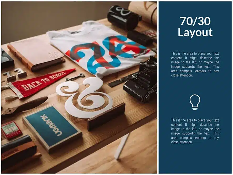 Create professional looking, effective training assets faster than ever—at no added cost. Content Library gives you access to an ever-expanding library of 12+ million images and customizable slide templates designed by pros. And it’s included with your Articulate 360 subscription.