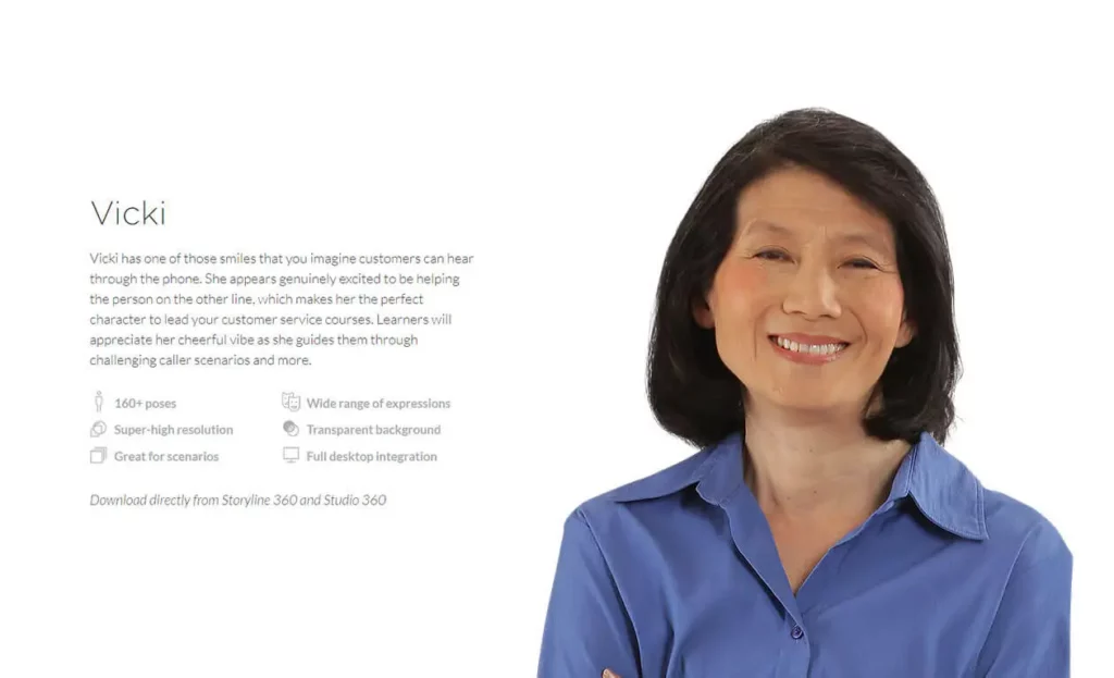 Choose Vicki when you need a cheerful guide for your customer service training.