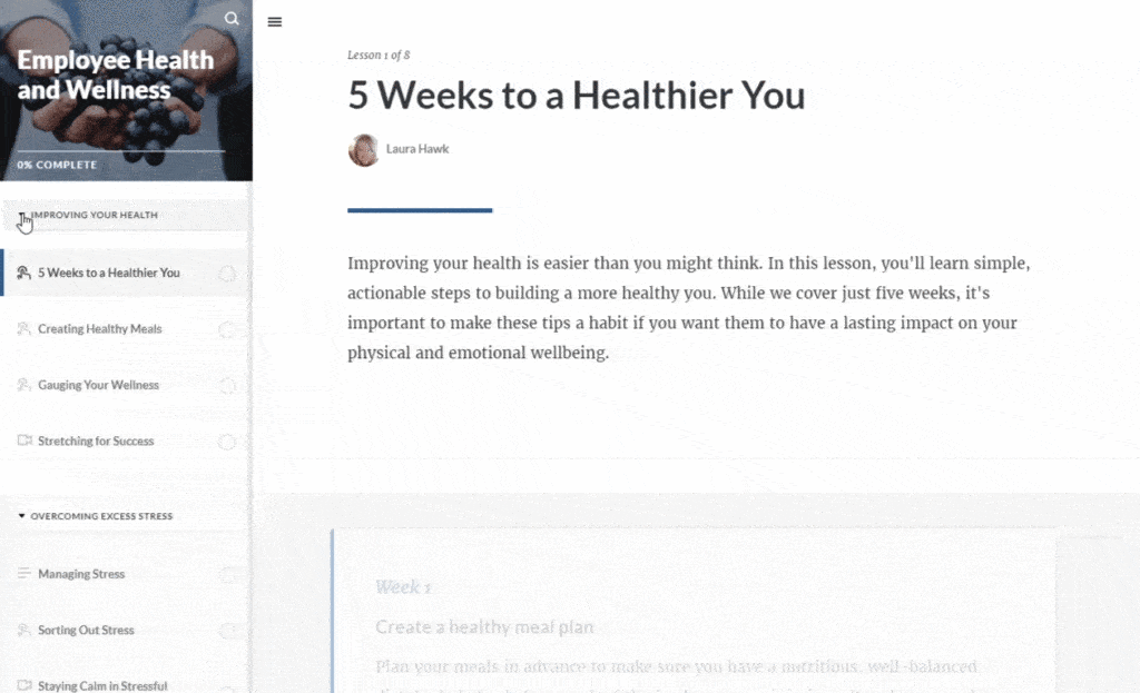 Learners can collapse sections of the course outline in the sidebar to see the overall structure of a course.