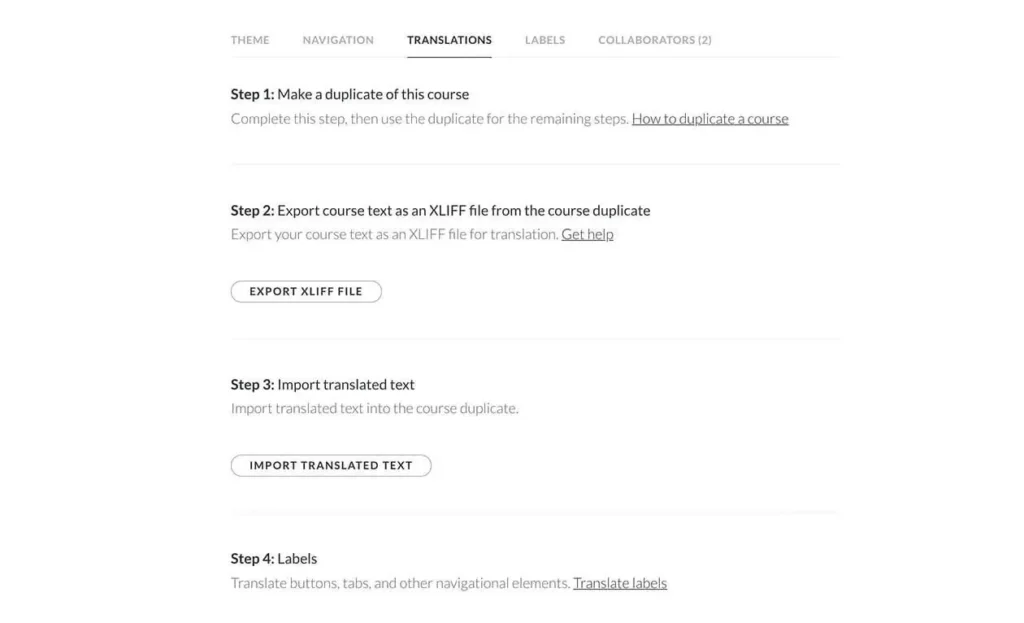 Localize courses into other languages by exporting text to an XLIFF file, translating it, and importing it back into Rise 360.