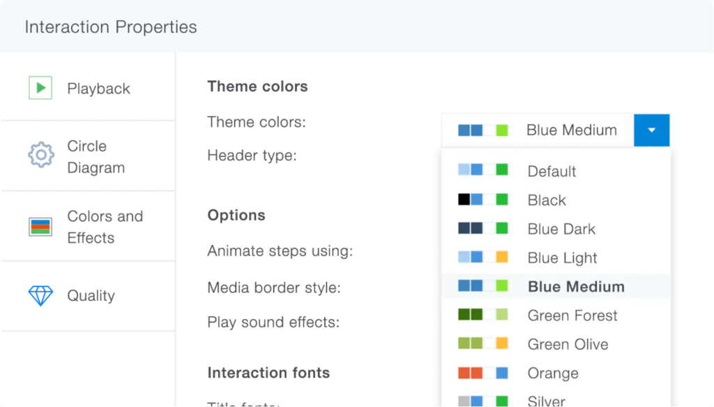 Customize the look and feel of each Engage 360 interaction. Easily adjust colors and animations to suit your needs—and apply these styles to the rest of your course with a few clicks.