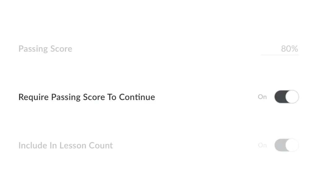 Make sure learners understand course content. Require a passing quiz score before they can move on to the next lesson.